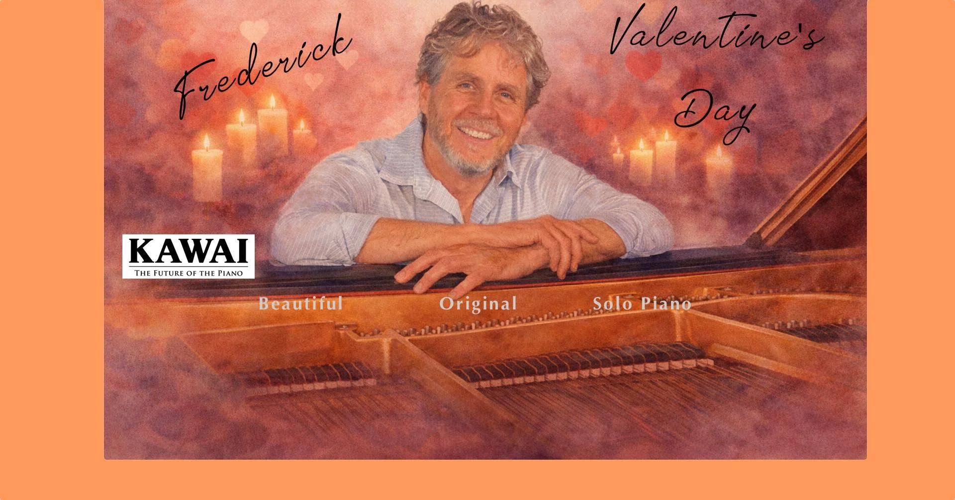 Enjoy an evening of romantic piano music. Performed on the exquisite Kawai SK-7 semi-concert grand piano, this intimate evening of live piano improvisation blends cinematic, classical, ambient, and light jazz influences. Each piece is created in the moment, offering a reflective and contemplative listening experience, enhanced by a candle-lit setting.